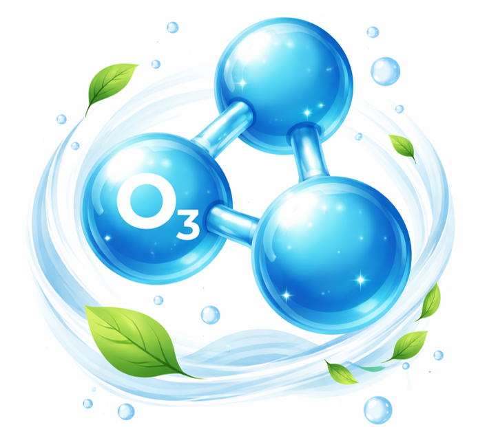 Ozón je plyn tvořený třemi atomy kyslíku (O₃). Oproti běžnému kyslíku je výrazně reaktivnější, a právě díky tomu dokáže narušit buněčné struktury mikroorganismů a odstranit pachové molekuly.